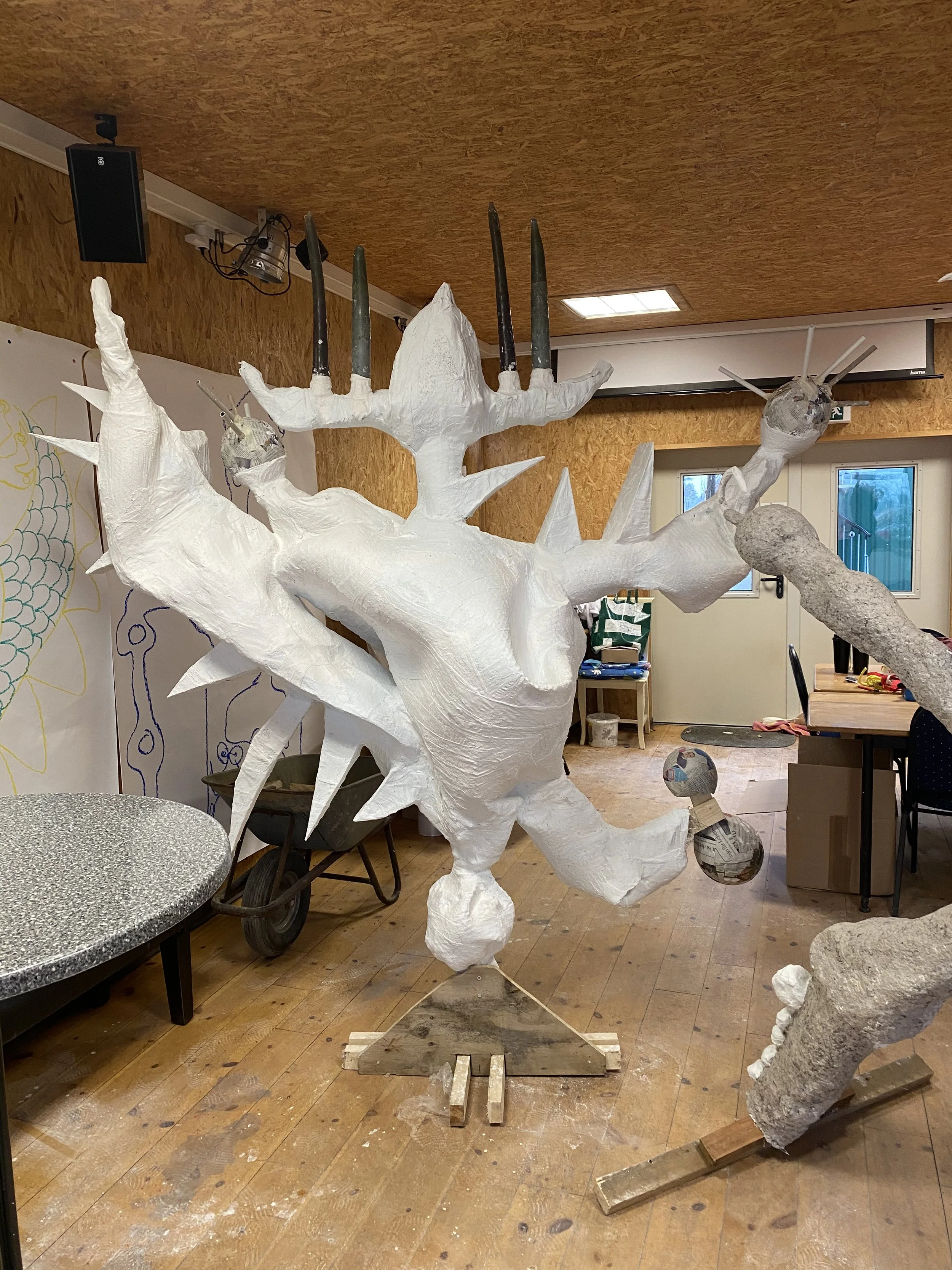 wood, wire, plaster, acrylic, paper, mixed textiles.