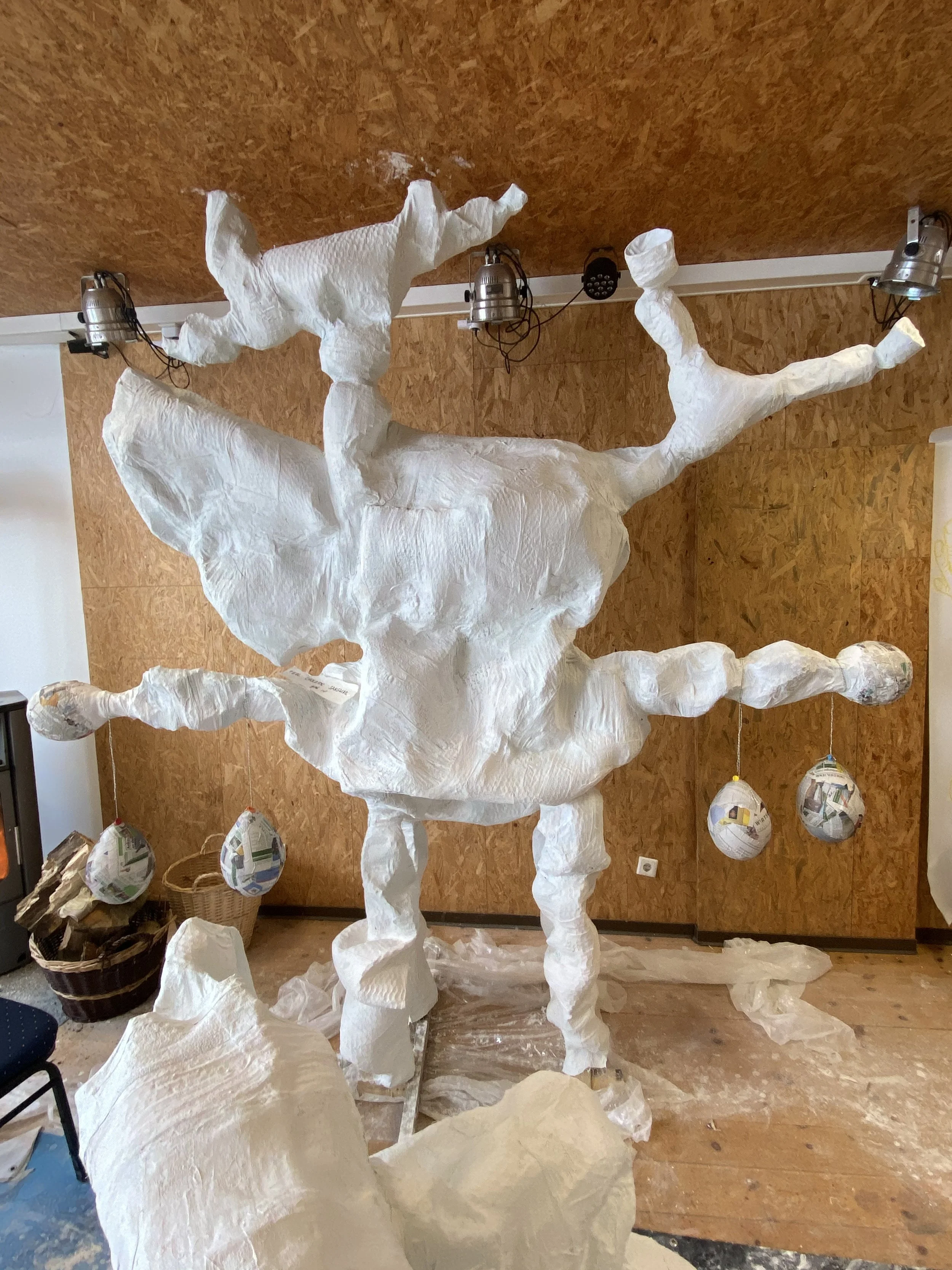 wood, wire, plaster, acrylic, paper, mixed textiles.