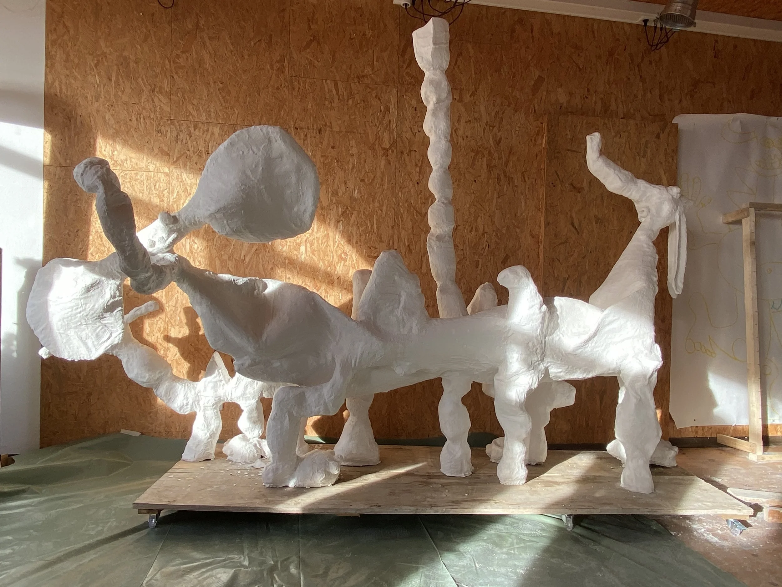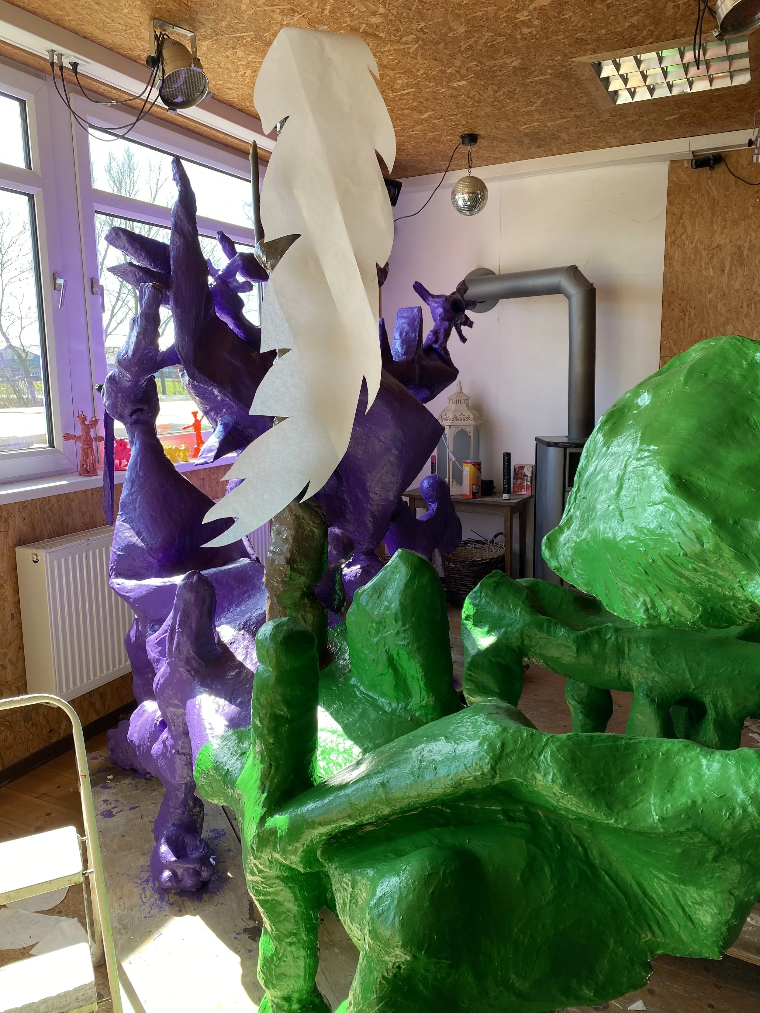 Lytte’s melancholic nature needs it very fluffy. Lytte might look like a sad rabbit, but feels like a soft alpaca. Lytte’s suit is very special: it’s a green and purple knitted suit outlining of the sculptures body, which shows the connection and love between Lytte and Mloog.