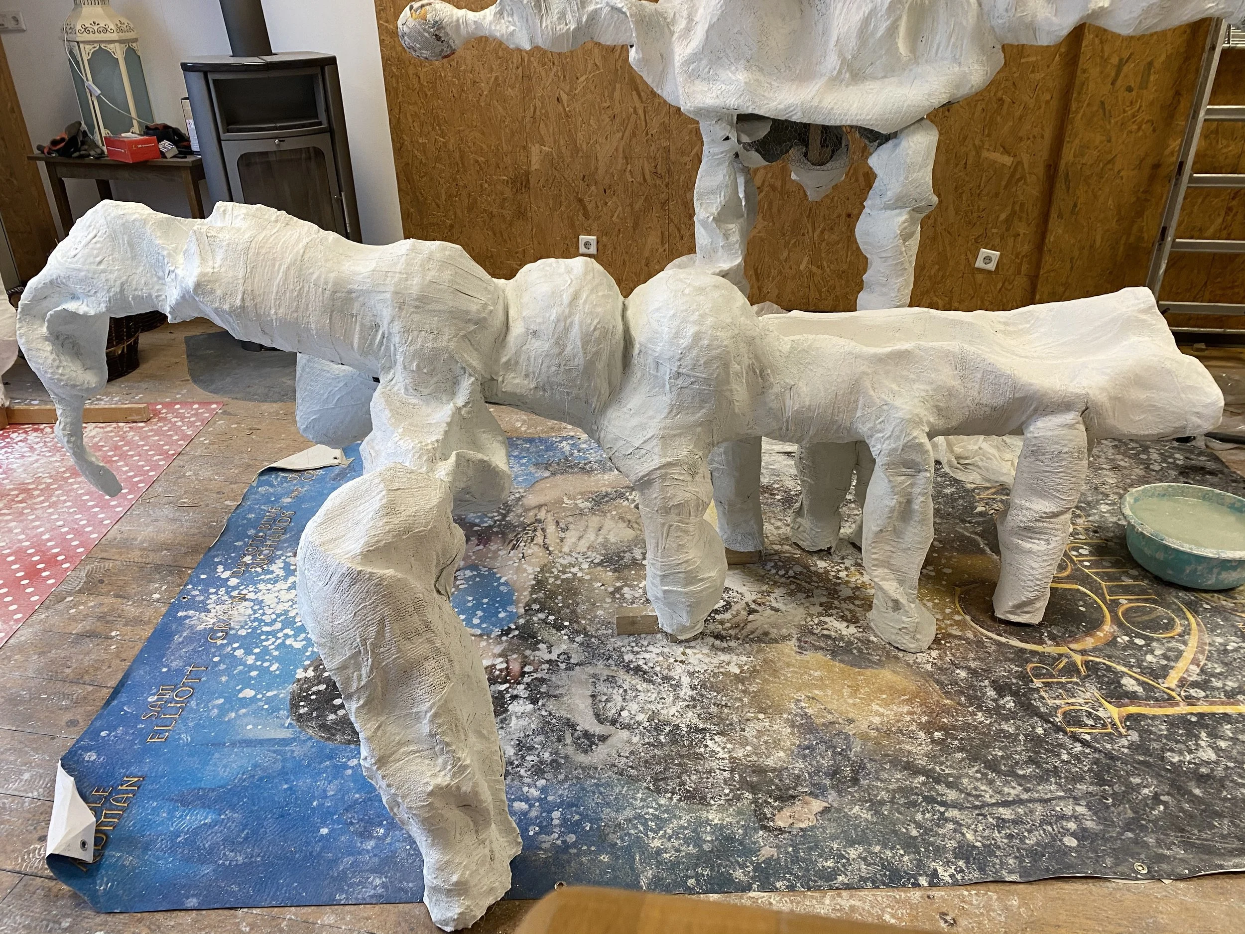 wood, wire, plaster, acrylic, paper, mixed textiles.